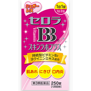 セロラBBスキンラボプラスは、皮膚のビタミンと呼ばれているビタミンB2・B6を主成分として、さらにヨクイニンエキスを配合し、口内炎やにきびのほか、皮膚のさまざまな症状の緩和に効果を発揮します。