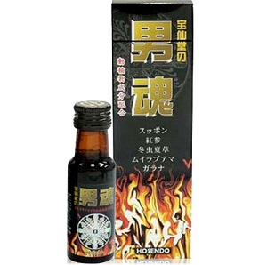 宝仙堂の男魂は、スッポン・紅参・冬虫夏草・ムイラプアマ・ガラナの動植物成分を配合したドリンクです。
