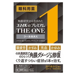 スマイル40 プレミアム ザ・ワン クールMAXは、つらい目の疲れ・目のかすみに効く目薬。防腐剤無添加です。