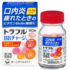 トラフルBBチャージaは、口内炎が気になる時、疲れた時のビタミンB2B6補給に日頃からの服用をおすすめします。