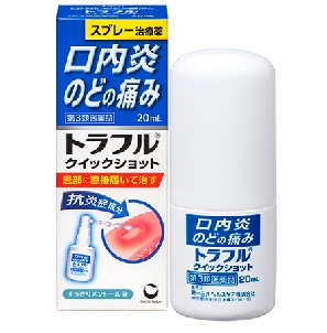 トラフル クイックショットは、抗炎症成分を配合。患部に直接効いて、痛み・はれをしずめるスプレータイプの治療薬です。
