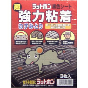 ラットホン黒色シートは、ピーナッツのニオイ付き粘着剤でネズミをおびき寄せ、捕獲する強力粘着シートです。 黒色で目立たず、L型、U型、ロ型に簡単に折って狭い所に置けます。