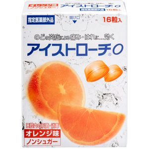 アイストローチ オレンジ味は、殺菌作用のある塩化セチルピリジニウムを配合したトローチ剤です。のどに付いた細菌を殺菌消毒し、のどの痛み・はれ・のどの不快感を治します。